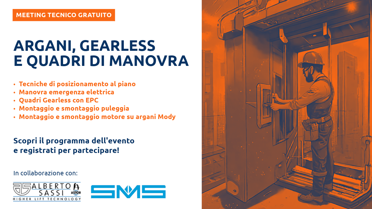 Organizzato in collaborazione con Alberto Sassi e SMS approfondiremo il loro catalogo prodotti con focus su: argani, gearless e quadri di manovra e non solo!