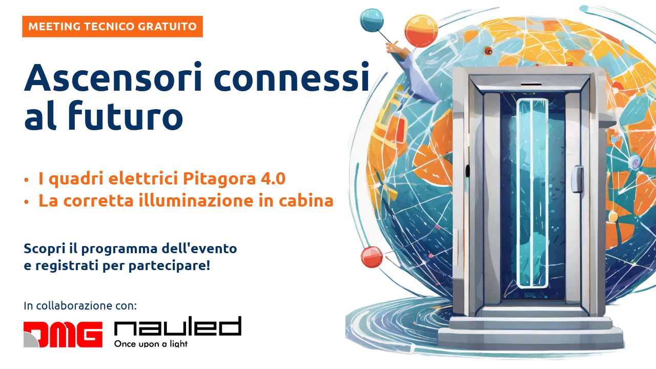 Partecipa al meeting tecnico formativo che arricchirà le tue conoscenze sui nuovi quadri elettrici Pitagora 4.0 di DMG, e sulle soluzioni per una corretta illuminazione in cabina grazie alla partecipazione di NAULED!
